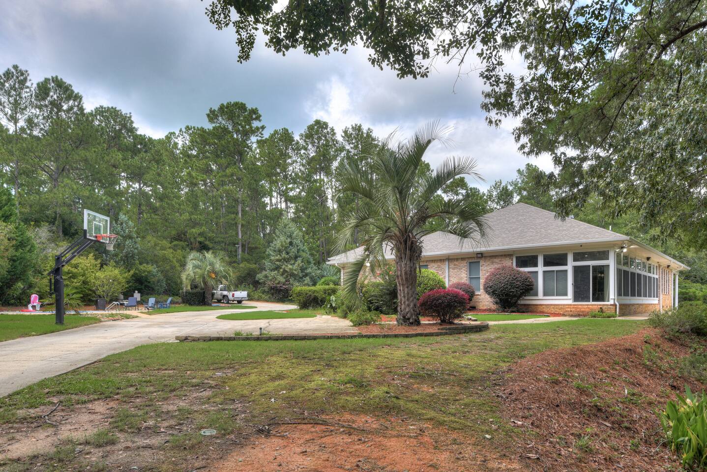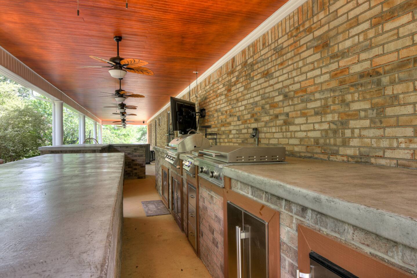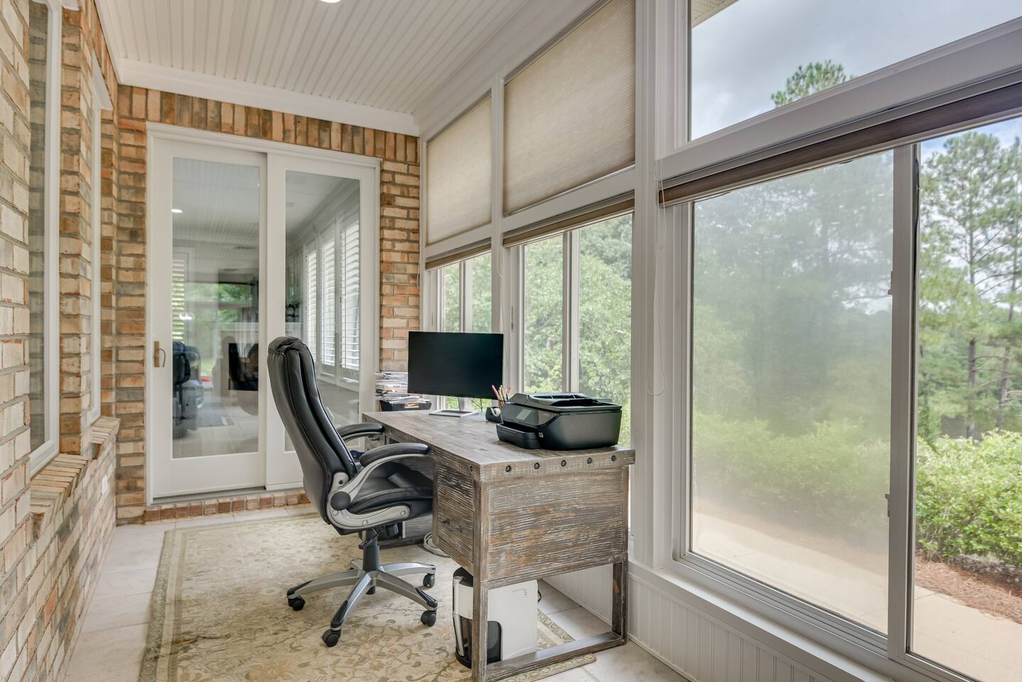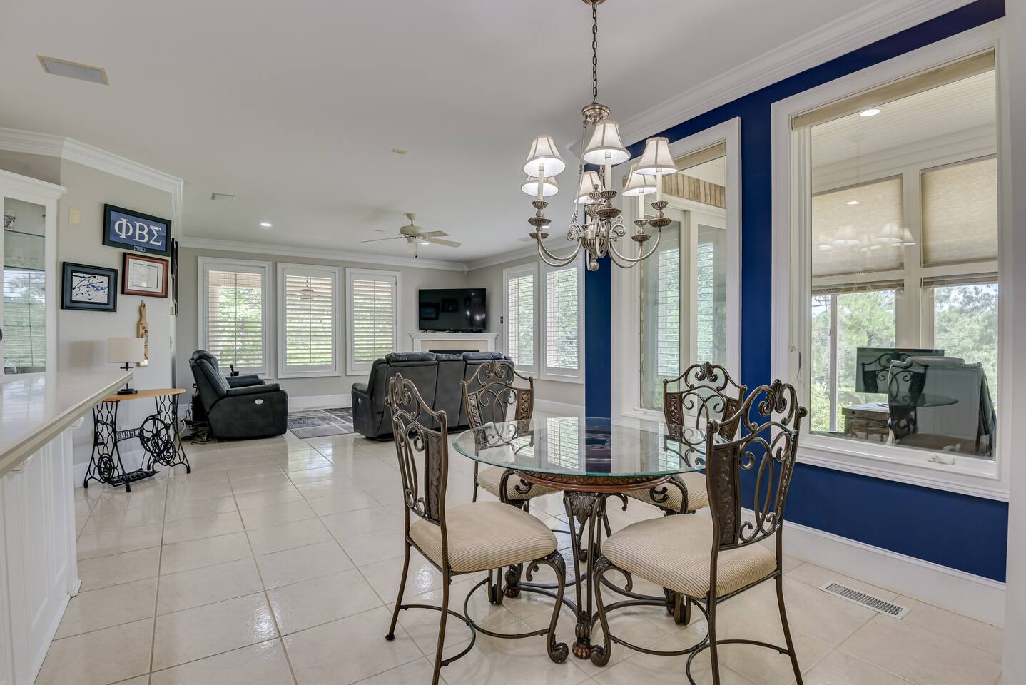 Perfect for small gatherings or quiet getaways! Book now to make memories that will last a lifetime :) Indoors -Single story home with all areas on the ground floor only 2 smalls steps at the front entrance. -Bedroom 1: King bed, dresser, TV, and ensuite bathroom. Luxurious walk-in shower and soaking tub. -Bedroom 2: Queen bed, dresser, TV -Bedroom 3: Queen bed, dresser, TV -Bedroom 4: Queen bed, dresser, TV -Hall bathrooms (2): One with tub, one with walk-in shower -Kitchen: Stainless steel appliances, kitchen island -Dining Room: Seats 6 -Dining Room 2: Seats 4 -Living Room: Sofa, loveseat, and TV -Living Room 2: Sofa, loveseat, and chair -Sunroom: Workspace, Sofa, Peloton, and TV Outdoors -Private pool for relaxation (the pool is NOT heated). -Outdoor kitchen for entertaining, includes top grate gas grill, flap top grill and two burners as well as an outdoor beverage refrigerator and ice maker! -One large stocked lake for fishing located just behind the house about a 5 minute walk. (Please note: small two ponds are not open for fishing.) -Parking in the driveway for up to 8 vehicles