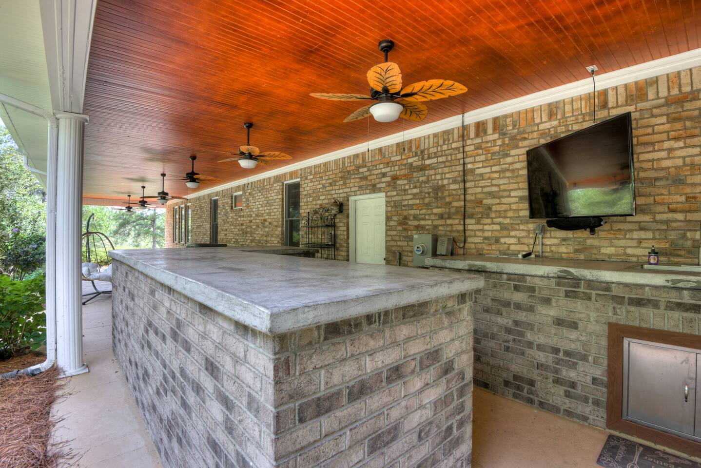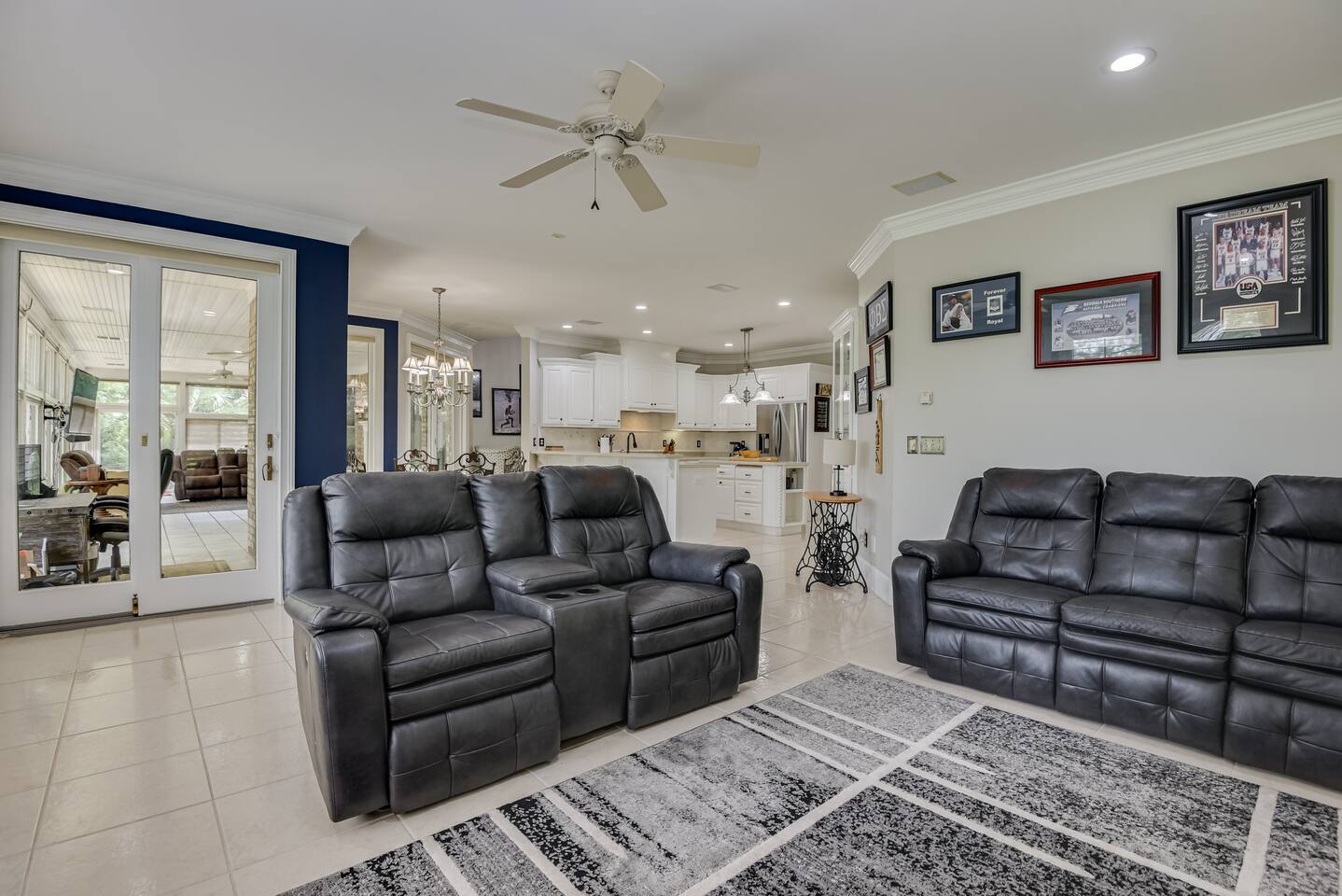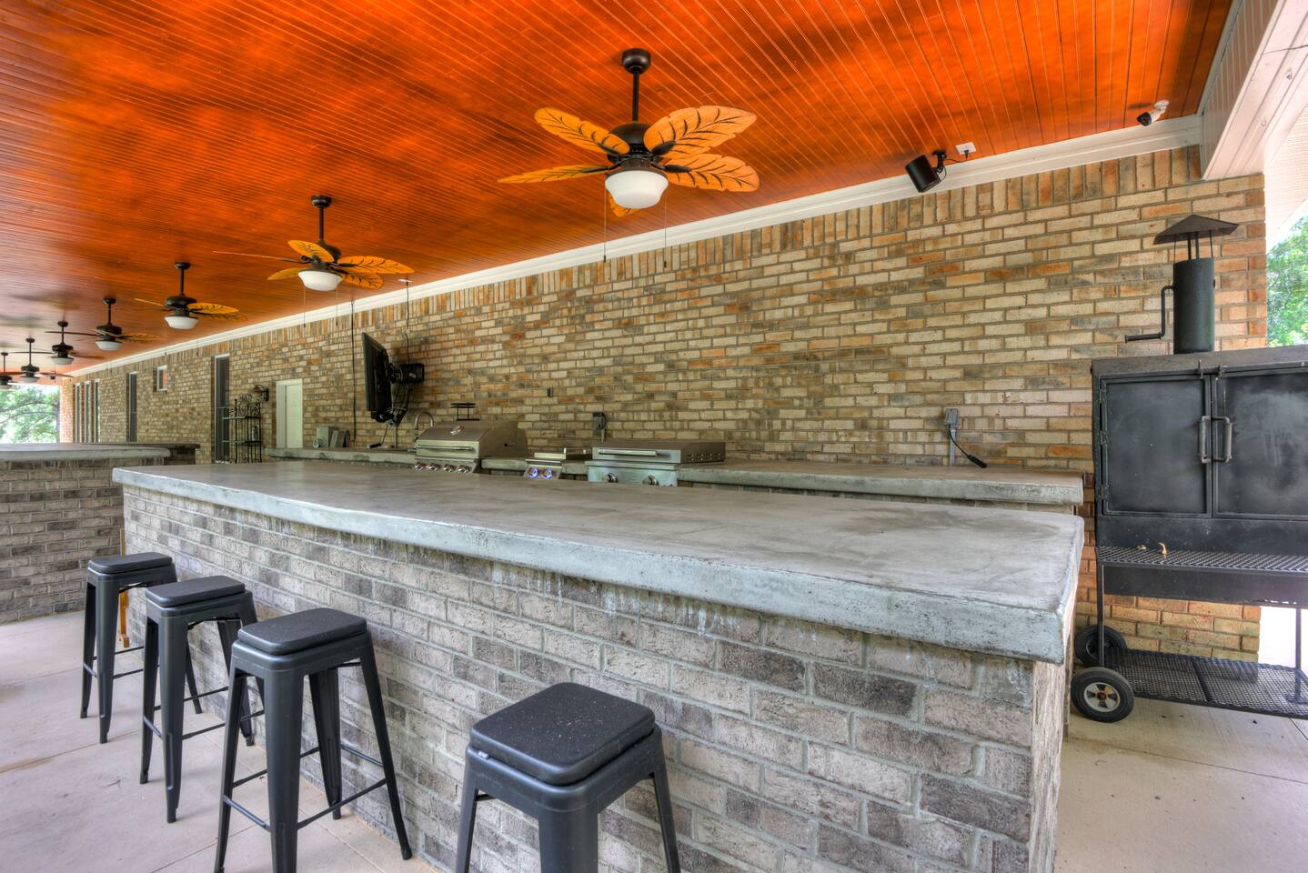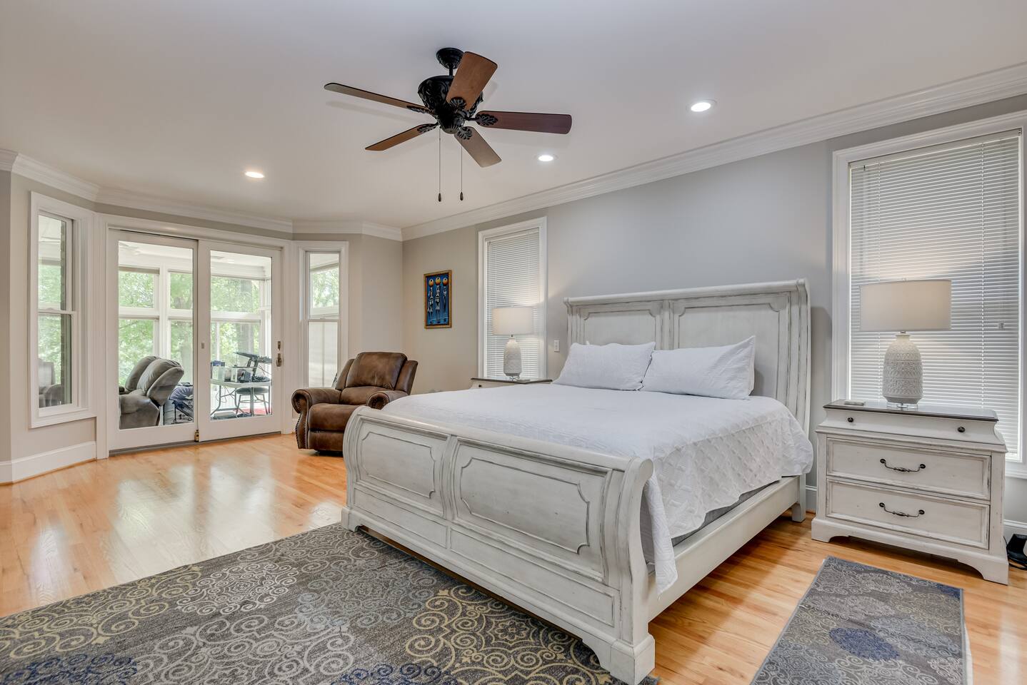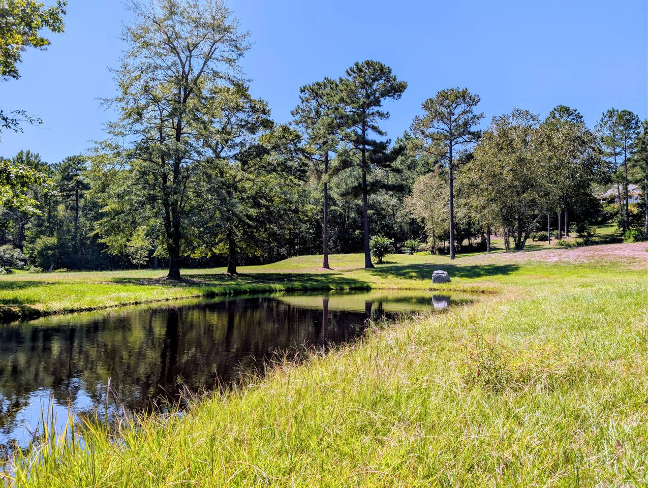 Perfect for small gatherings or quiet getaways! Book now to make memories that will last a lifetime :) Indoors -Single story home with all areas on the ground floor only 2 smalls steps at the front entrance. -Bedroom 1: King bed, dresser, TV, and ensuite bathroom. Luxurious walk-in shower and soaking tub. -Bedroom 2: Queen bed, dresser, TV -Bedroom 3: Queen bed, dresser, TV -Bedroom 4: Queen bed, dresser, TV -Hall bathrooms (2): One with tub, one with walk-in shower -Kitchen: Stainless steel appliances, kitchen island -Dining Room: Seats 6 -Dining Room 2: Seats 4 -Living Room: Sofa, loveseat, and TV -Living Room 2: Sofa, loveseat, and chair -Sunroom: Workspace, Sofa, Peloton, and TV Outdoors -Private pool for relaxation (the pool is NOT heated). -Outdoor kitchen for entertaining, includes top grate gas grill, flap top grill and two burners as well as an outdoor beverage refrigerator and ice maker! -One large stocked lake for fishing located just behind the house about a 5 minute walk. (Please note: small two ponds are not open for fishing.) -Parking in the driveway for up to 8 vehicles