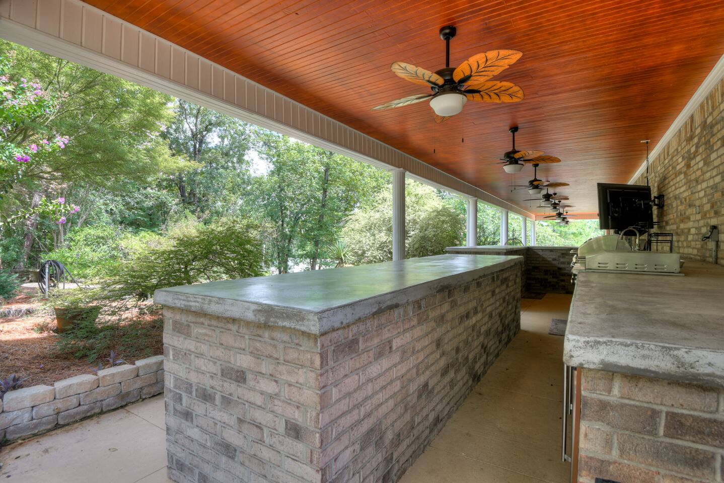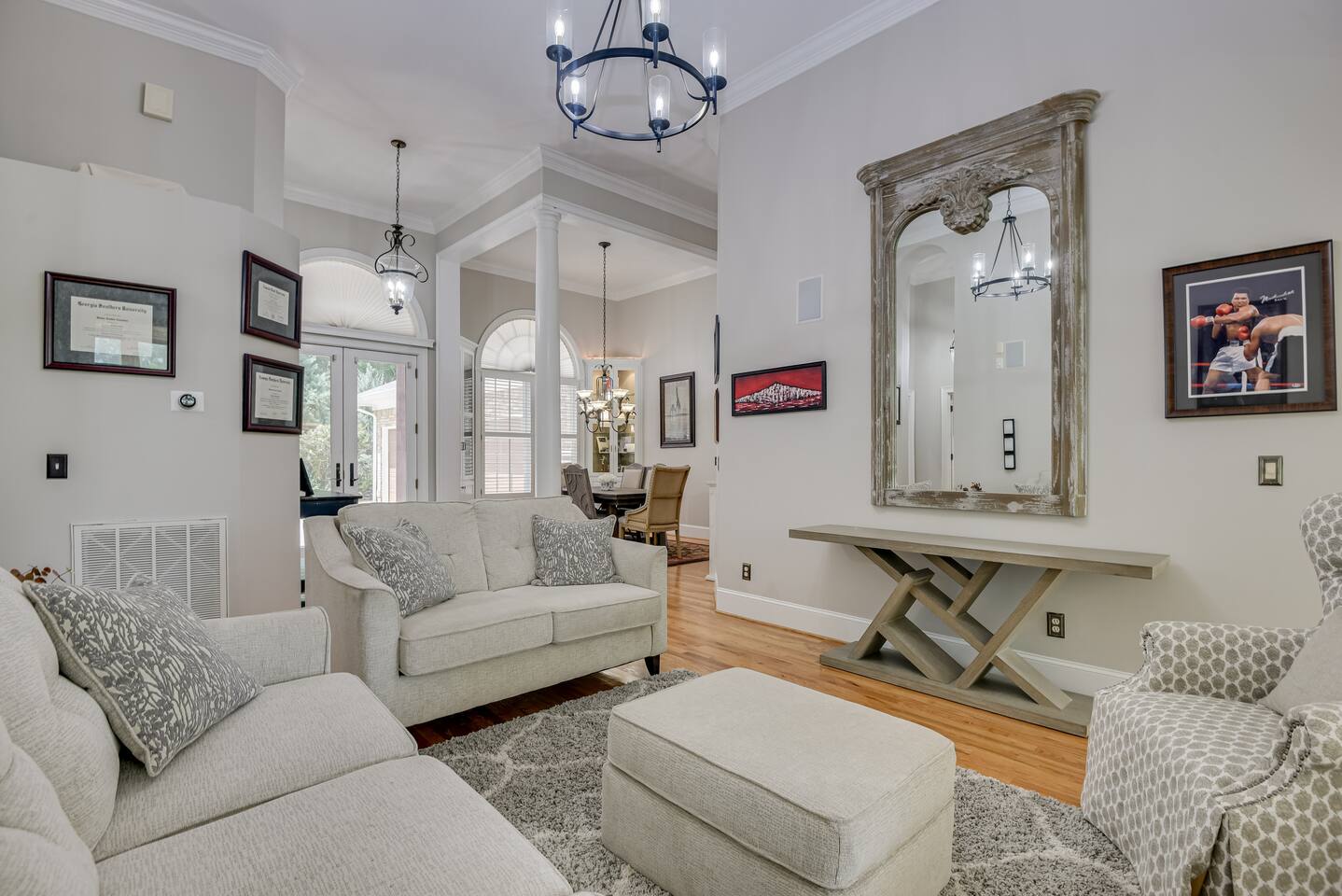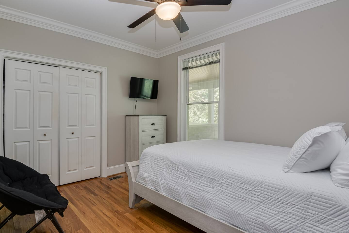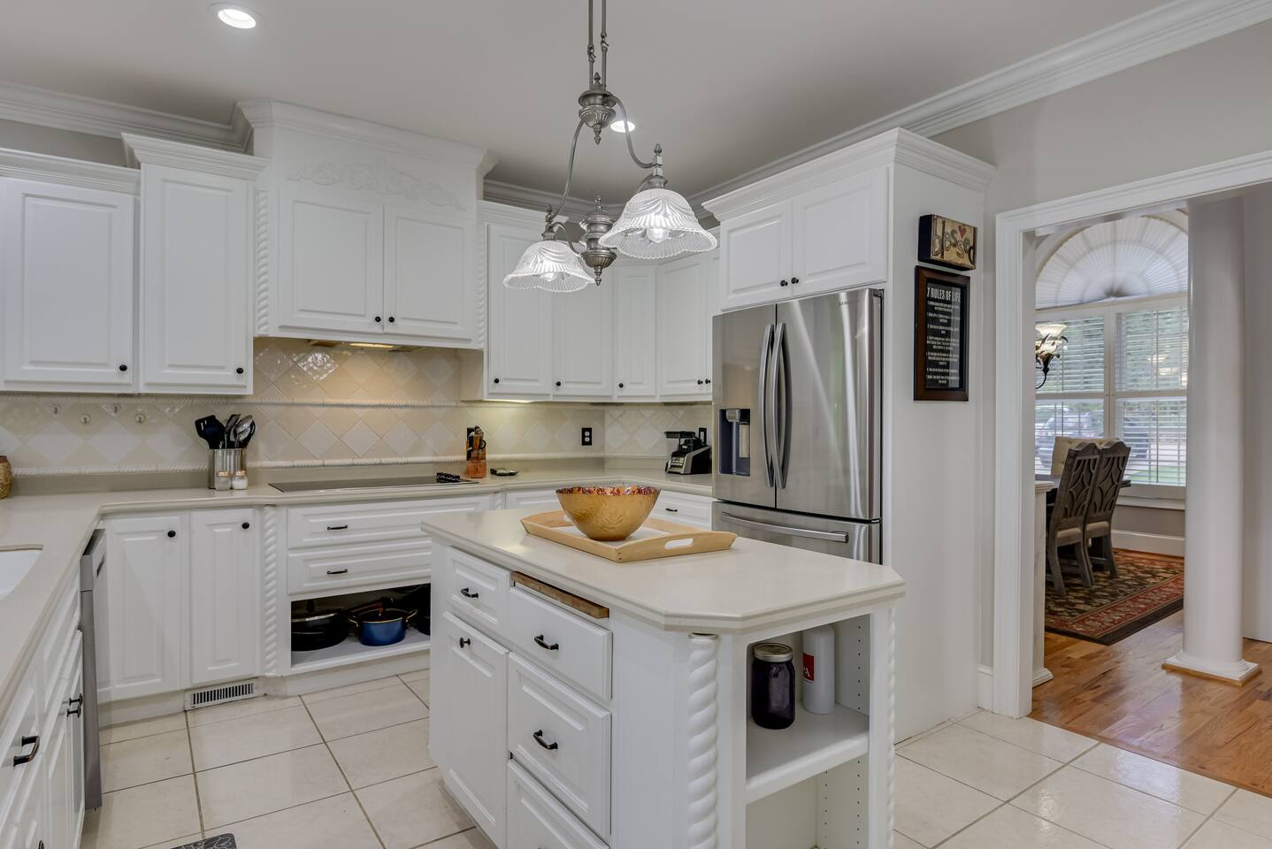 Perfect for small gatherings or quiet getaways! Book now to make memories that will last a lifetime :) Indoors -Single story home with all areas on the ground floor only 2 smalls steps at the front entrance. -Bedroom 1: King bed, dresser, TV, and ensuite bathroom. Luxurious walk-in shower and soaking tub. -Bedroom 2: Queen bed, dresser, TV -Bedroom 3: Queen bed, dresser, TV -Bedroom 4: Queen bed, dresser, TV -Hall bathrooms (2): One with tub, one with walk-in shower -Kitchen: Stainless steel appliances, kitchen island -Dining Room: Seats 6 -Dining Room 2: Seats 4 -Living Room: Sofa, loveseat, and TV -Living Room 2: Sofa, loveseat, and chair -Sunroom: Workspace, Sofa, Peloton, and TV Outdoors -Private pool for relaxation (the pool is NOT heated). -Outdoor kitchen for entertaining, includes top grate gas grill, flap top grill and two burners as well as an outdoor beverage refrigerator and ice maker! -One large stocked lake for fishing located just behind the house about a 5 minute walk. (Please note: small two ponds are not open for fishing.) -Parking in the driveway for up to 8 vehicles