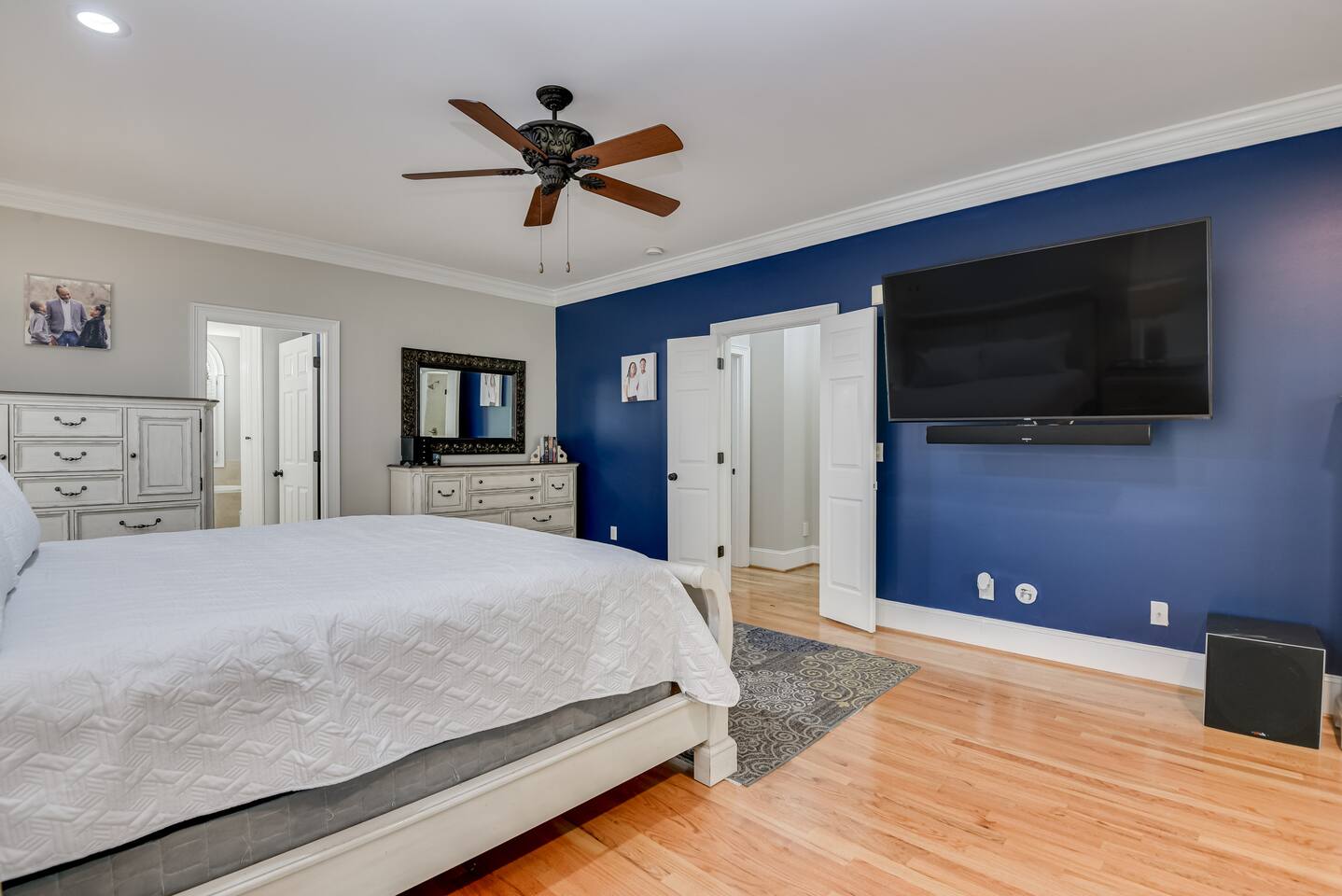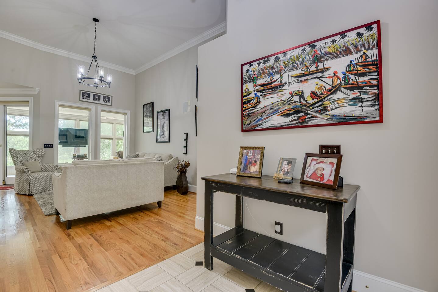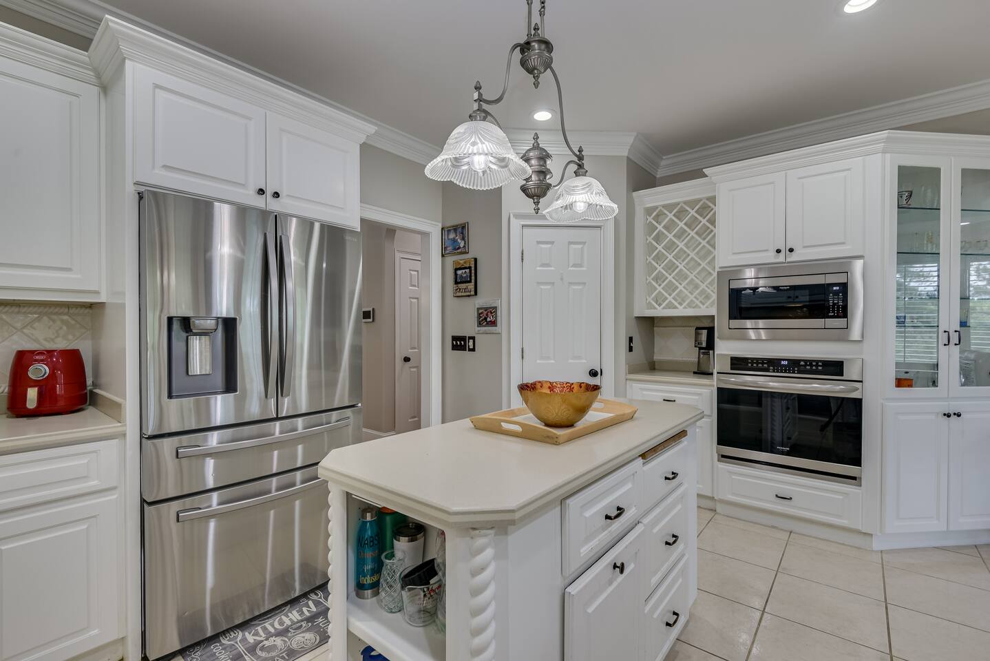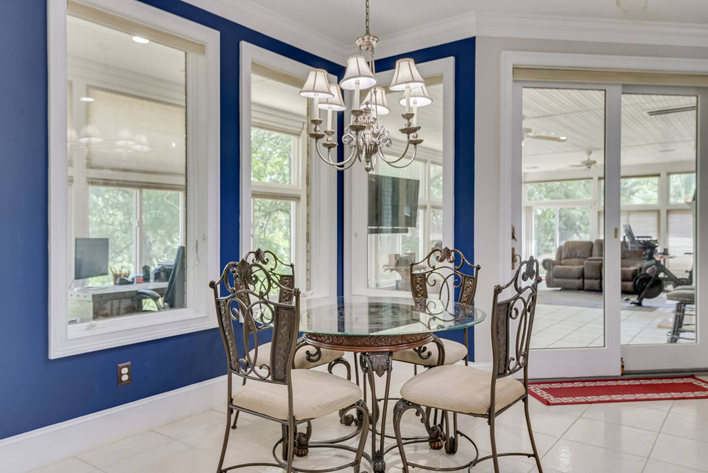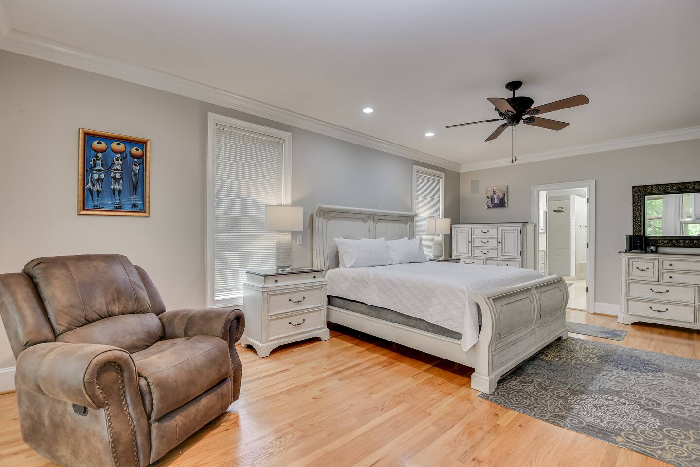 Perfect for small gatherings or quiet getaways! Book now to make memories that will last a lifetime :) Indoors -Single story home with all areas on the ground floor only 2 smalls steps at the front entrance. -Bedroom 1: King bed, dresser, TV, and ensuite bathroom. Luxurious walk-in shower and soaking tub. -Bedroom 2: Queen bed, dresser, TV -Bedroom 3: Queen bed, dresser, TV -Bedroom 4: Queen bed, dresser, TV -Hall bathrooms (2): One with tub, one with walk-in shower -Kitchen: Stainless steel appliances, kitchen island -Dining Room: Seats 6 -Dining Room 2: Seats 4 -Living Room: Sofa, loveseat, and TV -Living Room 2: Sofa, loveseat, and chair -Sunroom: Workspace, Sofa, Peloton, and TV Outdoors -Private pool for relaxation (the pool is NOT heated). -Outdoor kitchen for entertaining, includes top grate gas grill, flap top grill and two burners as well as an outdoor beverage refrigerator and ice maker! -One large stocked lake for fishing located just behind the house about a 5 minute walk. (Please note: small two ponds are not open for fishing.) -Parking in the driveway for up to 8 vehicles