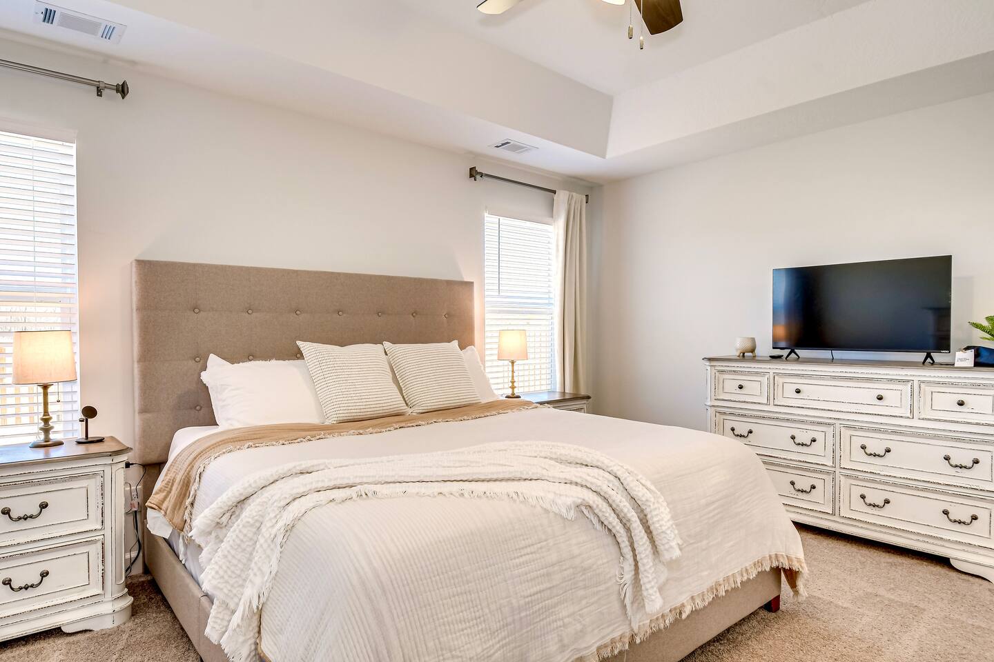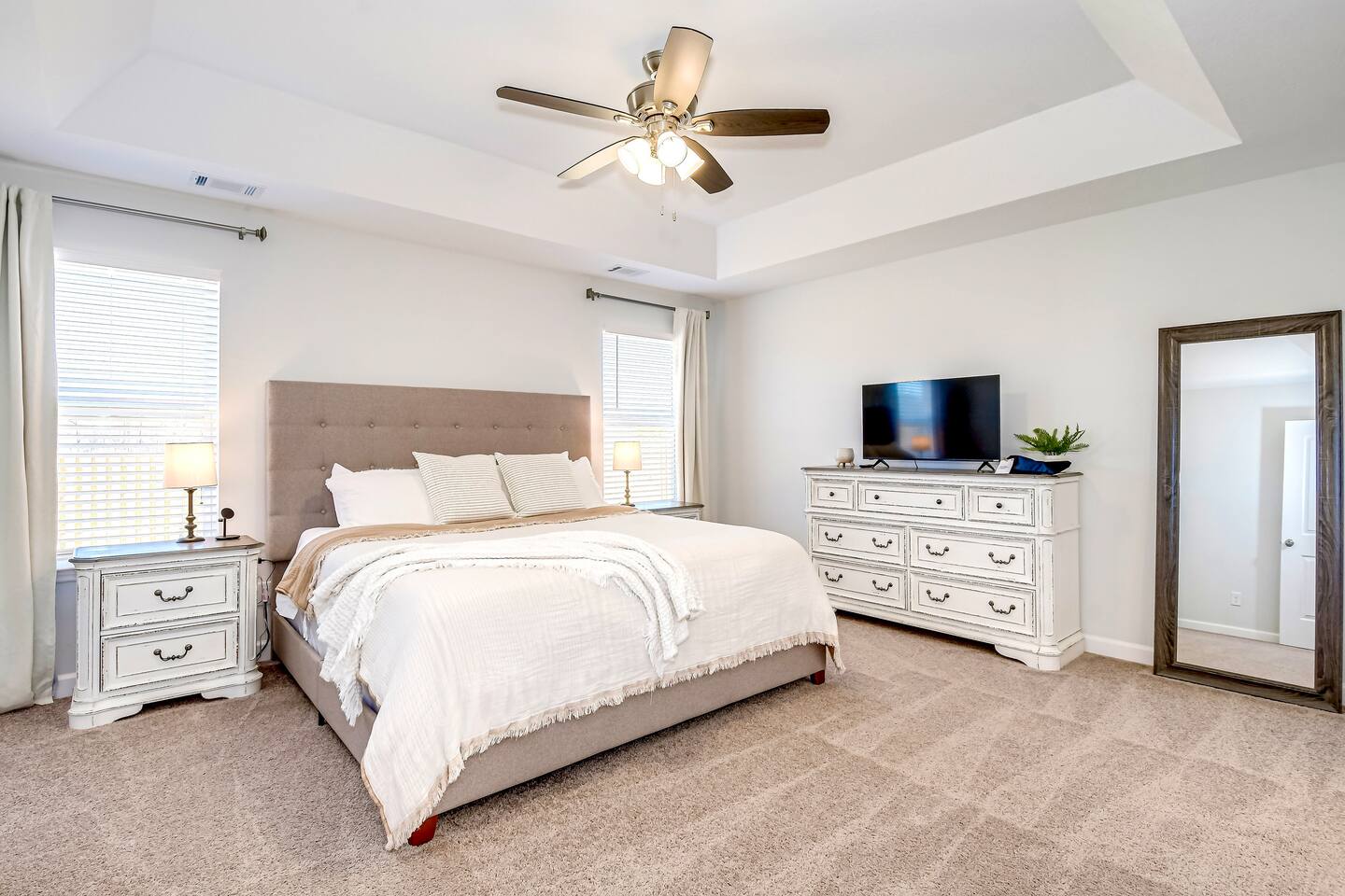 Bedroom 1: (Master Bedroom) – King -TV Bedroom 2: (Guestroom) – Queen – TV Bedroom 3: (Guestroom) – Queen – TV Visiting guests can enjoy the convenience of a sleeper sofa for additional accommodations.